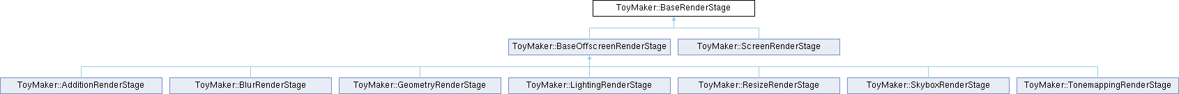 Implemented in ToyMaker::AdditionRenderStage, ToyMaker::BlurRenderStage, ToyMaker::GeometryRenderStage, ToyMaker::LightingRenderStage, ToyMaker::ResizeRenderStage, ToyMaker::ScreenRenderStage, ToyMaker::SkyboxRenderStage, and ToyMaker::TonemappingRenderStage.