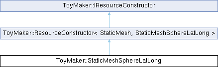 Public Member Functions inherited from ToyMaker::ResourceConstructor< StaticMesh, StaticMeshSphereLatLong > | |