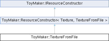 Public Member Functions inherited from ToyMaker::ResourceConstructor< Texture, TextureFromFile > | |